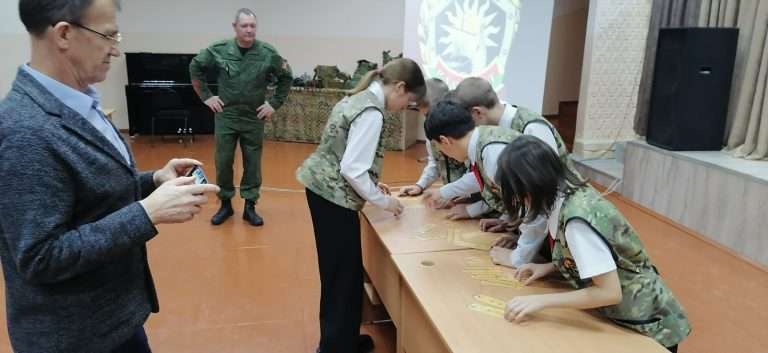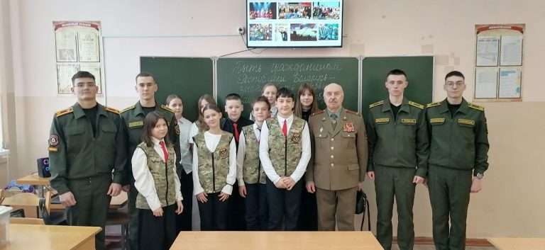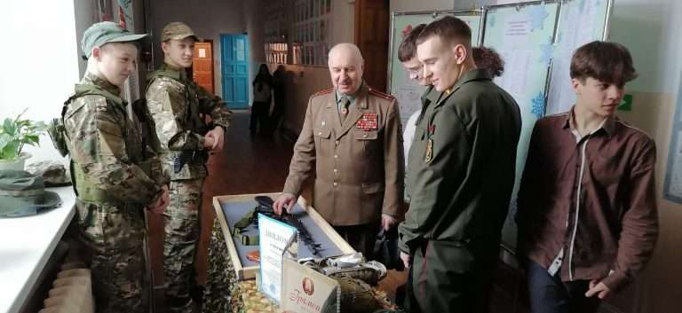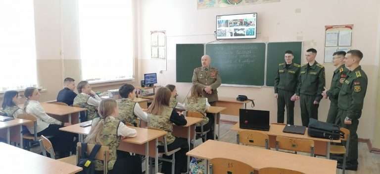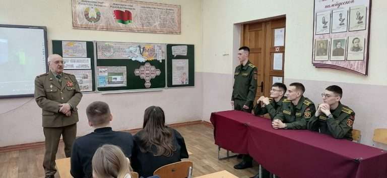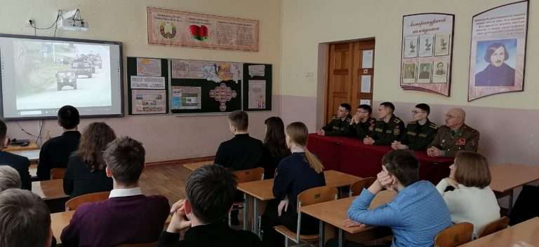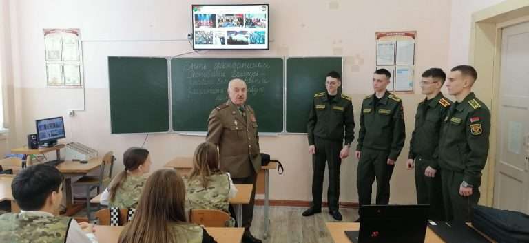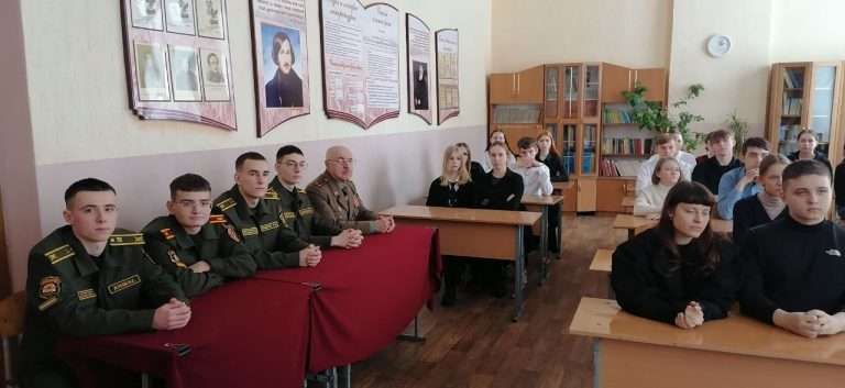 29 января в нашей школе в рамках информационно-образовательного проекта «ШАГ» состоялось мероприятие на тему: «Быть достойным гражданином Республики Беларусь – значит быть готовым в любую минуту встать на защиту Родины». Почетным гостем мероприятия стал председатель районной организации «Белорусский союз офицеров» Щербаков Алексей Васильевич, на встрече так же присутствовали курсанты ВТФ БНТУ Луцай Михаил, Ющенко Тимофей а так же курсанты ВТФ БелГУТ Ушаков Марк, Жуков Максим. Мероприятие началось с визита почетных гостей в военно-патриотический класс «Аист». В ходе посещения состоялся живой диалог: гости пообщались с учащимися, поинтересовались их успехами и буднями кадетского братства». В своем выступлении Алексей Васильевич подчеркнул, что защита Отечества — это не только священный долг, но и почетная обязанность каждого гражданина, а любовь к Родине начинается с уважения к её истории и традициям. Его напутственные слова о мужестве и чести стали важным ориентиром для будущих защитников.