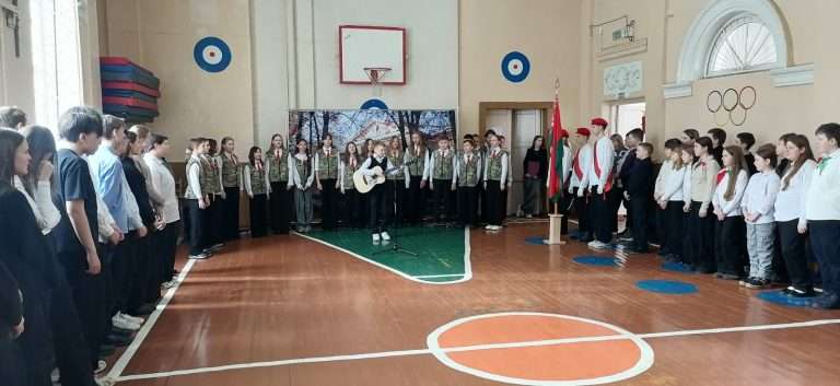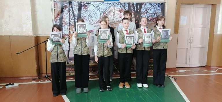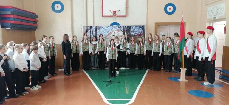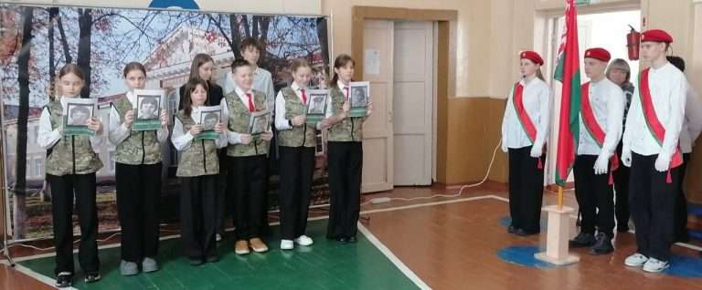 Класс «Аист» рассказал истории о героях Жлобинщины, которые отдали свою жизнь в той войне — их имена и подвиги снова звучали в школьном зале.