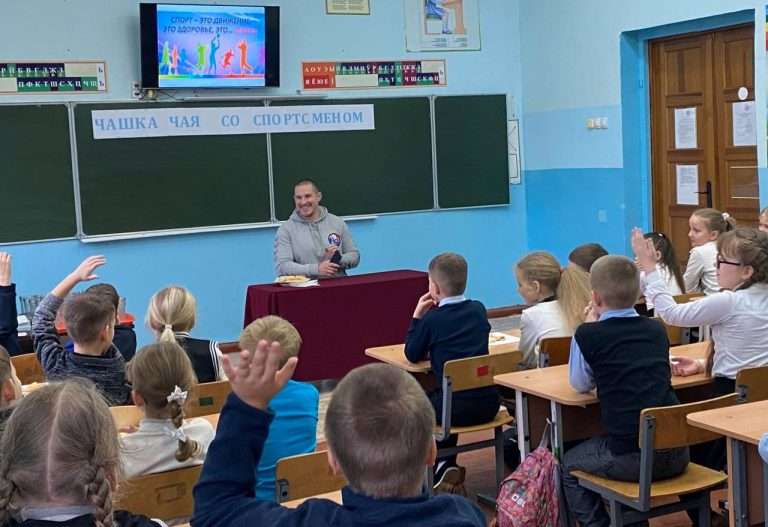 ❓ Ребята задали гостю следующие вопросы: какая жизнь у спортсменов; распорядок дня спортсмена. А главное, как достичь успеха в жизни через спорт.